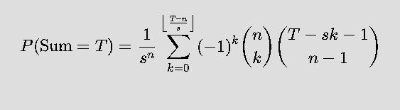 P ( Sum β‰₯ T ) = βˆ‘ x=T ns P ( Sum = x )